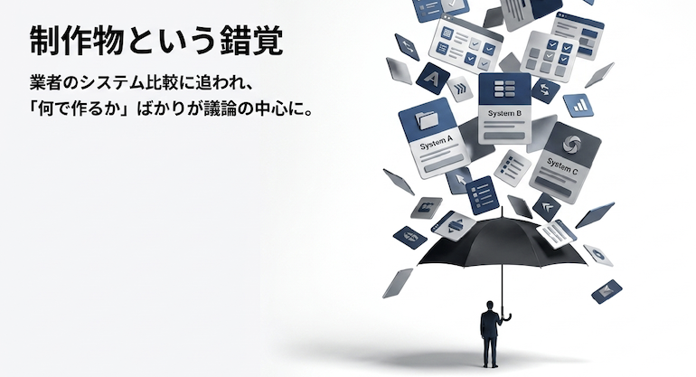 WEB業者のシステム比較に追われ「何で作るか」ばかりが議論の中心に