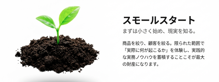「まずは小さく始める」という考え方を強くおすすめしています。